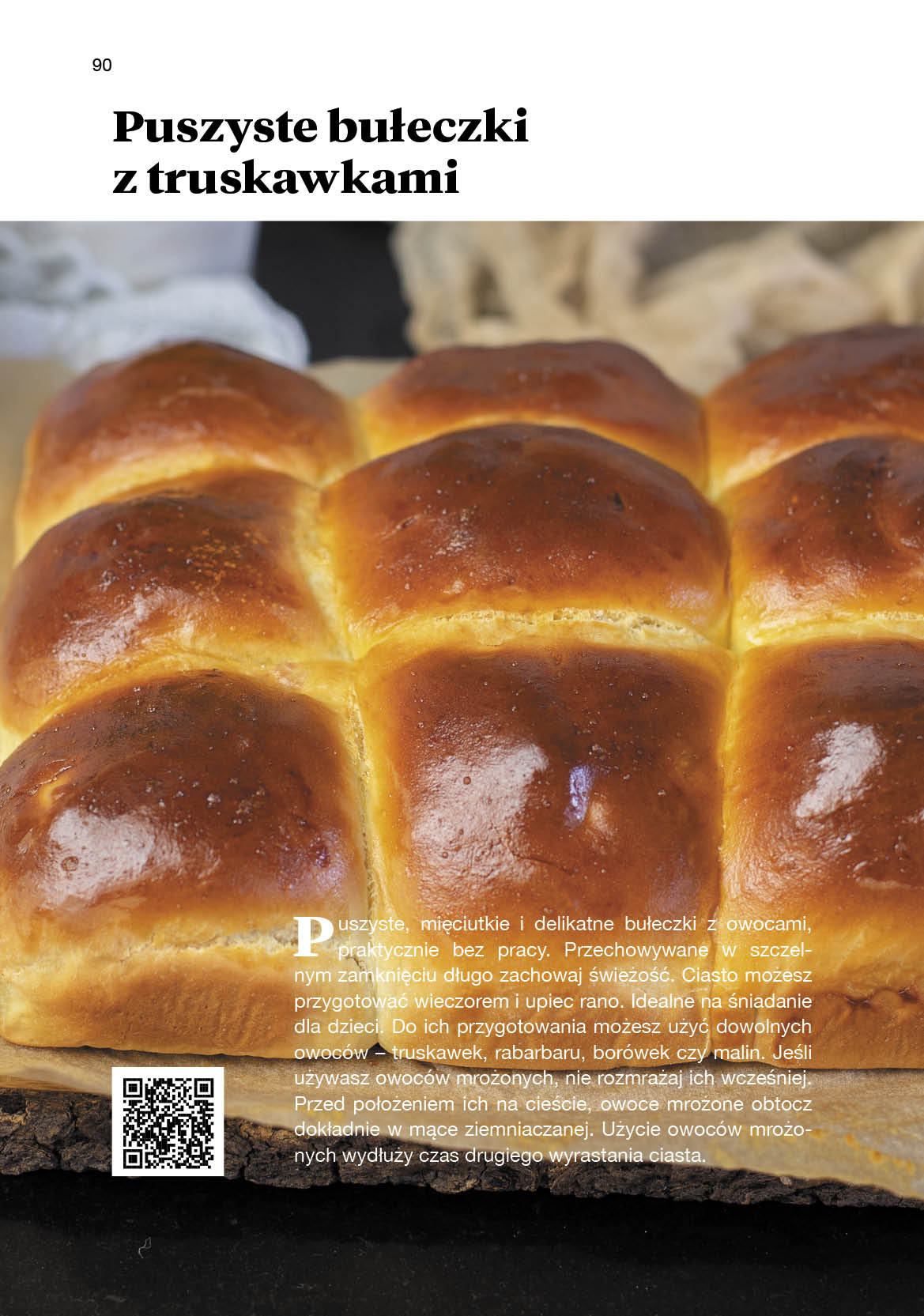 Przy każdym przepisie znajdziesz kod QR, który umożliwia bardzo szybkie włączenie filmu – wystarczy go dotknąć. Film poprowadzi Cię przez przepis od początku do końca. W ten sposób oszczędzasz swój czas i nie musisz wertować całej sieci.